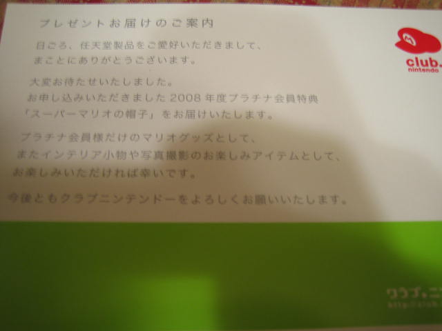 今日、クラブニンテンドーからのプラチナ会員特典が届きました。
